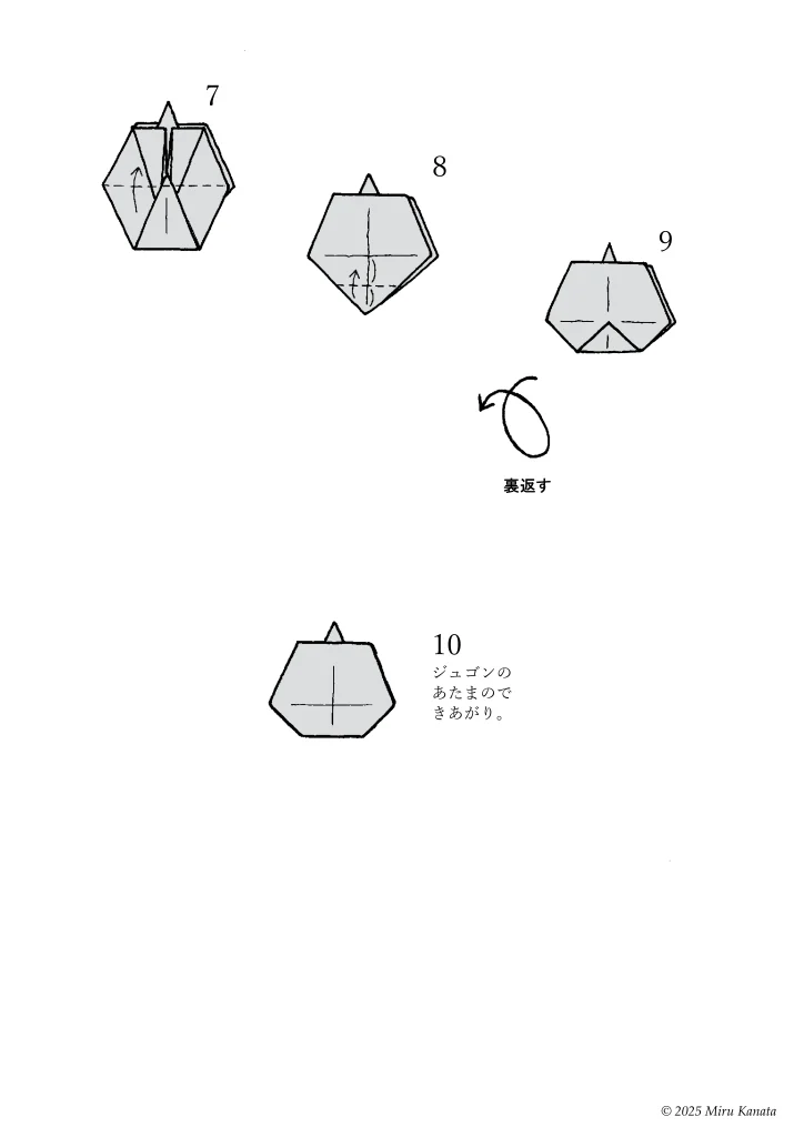 曲線のかたちを、少ない数の直線に移し替えて表現する、おりがみの潔さ、清潔感、を味わっていただけると思います。